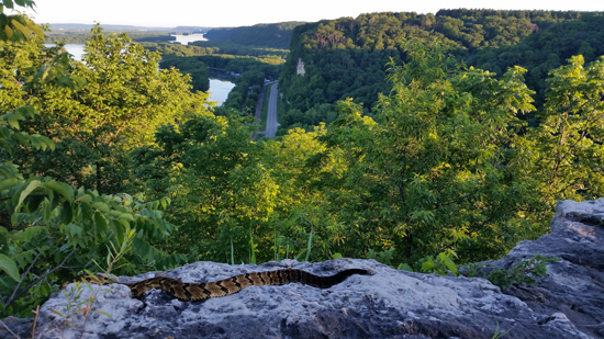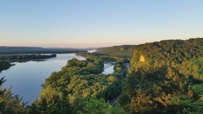 A spectacular hike-in campsite, called Camp Terry Hennessy, is three-quarters of a mile from the lot. It’s free, but you need to register first at the state forest headquarters. The trail begins by following an old access road and promises to jumpstart your heart as you wind around the base of the towering hillside. In the spring or summer, take a break on your ascent to listen for cerulean warblers and red-shouldered hawks, two state-threatened birds that nest in this densely wooded area. After summiting the bluff, the trail veers south next to a white pine planting and follows a level path through a mixed hardwood forest to the Mississippi Loop trailhead sign. Under a canopy of tall oaks, trek the well-marked Mississippi Loop Trail to Camp Hennessy. After setting up camp, wander down the trail to the wooden bench that overlooks the Mississippi. Prairie grass carpets the ground and cedar trees frame this picturesque view of the river. Continue down the trail, intermittently catching views of the river’s two-mile-wide floodplain. At the junction for the Paint Rock Overlook trail take a left to visit one of the most inspiring views of the Mississippi in the Upper Midwest. Before arriving at the overlook, the trail passes several large Indian mounds. Built during the Middle-Late Woodland period, these 1,000-year-old earthworks are some of the area’s oldest human structures. Mound building was a communal event that often required hauling soil in baskets up from the valley. Sadly, these mounds represent only a tiny fraction of the nearly 10,000 mounds that used to mark this landscape. Today, most of the mounds have been lost to plows, bulldozers, looters and even pioneer cemeteries. Standing next to these ancient mounds is powerful medicine for the modern soul. They tell the story of this landscape’s formerly rich biodiversity, when a wide array of plants and animals — including elk, mountain lions, wolves, buffalo, black bears and prairie chickens — flourished here for thousands of years. A hike out to the timeless Paint Rock Overlook is a step into what Iowa may have felt like 1,000 years ago.
