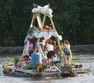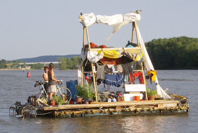 The Mississippi River Project Lindseyp. and Hannahb., floating and pedaling a pontooned raft, the HMR C. Bernadette Able down the river. Surviving poison ivy, meeting Winona's boathouse folks, it's all on their blog. Here are some images sent to us from Big River readers. Near Prairie du Chien, Wisconsin