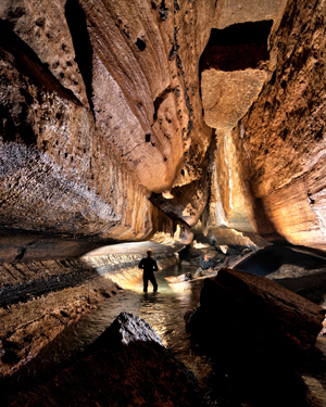 At one point the state considered opening the cave for public viewing. This plan was abandoned because of the logistics of making it accessible and the environmental damage that would cause. It has been called “by far the most significant cave in the Midwest” due in part to the plethora of spectacular features, including over 100 domes, many with significant waterfalls. In 1987 Coldwater was designated a Natural National Historic Landmark by the U.S. Department of the Interior. After several years Coldwater was returned to the landowner, who has graciously worked with a secret society of cavers ever since. To date they have mapped 17.4 miles of passages, making Coldwater Cave Iowa’s biggest.