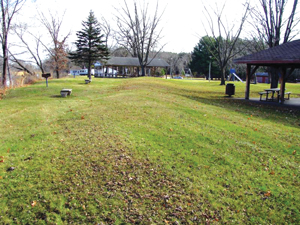 Avoka, Wyalusing, Pikes Peak From Frank’s Hill, Greenwood and I drove to Avoca, where an ancient gathering place is now a modern one: a city park on the east edge of town. Numerous circular humps in the park are easy to spot, and in some places they touch playground areas. A backwater lake is a popular fishing spot, and the park includes a shady campground. Other conical, bear and bird mounds along the Lower Wisconsin shores are also public. A bird effigy can be seen from Highway 60 west of Highway 80, and a wayside on the north side of Highway 60 between Prairie du Chien and Wauzeka contains more mounds. At the mouth of the Wisconsin, the magnificent Wyalusing State Park includes dozens of well-preserved mounds along the blufftops, overlooking the confluence of the Wisconsin and Mississippi and close to campsites. Across the river, effigy mounds are found at Pikes Peak State Park and, of course, Effigy Mounds National Monument, including its Sny Magill unit. Between Baraboo and the river, Devil’s Lake State Park contains effigy mounds, and more are found in the Muscoda area at the Ho-Chunk bison ranch. Many more are already gone.