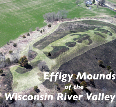 Effigy Mounds of the Wisconsin River Valley Huge bears, long-tailed water spirits and birds with wingspans reaching up to a quarter-mile settled into the Wisconsin River valley centuries ago. Thanks to the work of preservationists, people can easily visit many of these effigy mound sites today. Built one basketfull of earth at a time, these earthworks have spoken to many generations of people since their construction about 1,000 years ago. No one knows exactly what they meant to their builders, though we have a pretty good idea through the beliefs of modern Ho-Chunk people, who trace their lineage back to the mound builders. Wisconsinites are proud to point out that these earthen creatures are found almost exclusively in southern Wisconsin and into the Driftless Area, including the corners of Illinois, Iowa and Minnesota, while round (conical) and long (linear) mounds are found here and across much of the United States. “It is an identity marker for this part of the world,” said Ernie Boszhardt, an archaeologist with the Center for Wisconsin Archaeology at UW-Baraboo/Sauk County. Conical- and linear-mound building also stretched over thousands of years, while effigy-mound building probably spanned only a few hundred years. The archaeological record shows that effigy mound builders were relatively insular, early isolationists in trade, one might say. While archaeological remains of many earlier Americans show far-flung trade networks bringing goods to and from the shores of Lake Superior, the Rockies and the Gulf of Mexico, material traces of the effigy mound builders show that they preferred to “buy local.” They had everything they needed, pointed out Amy Rosebrough, assistant state archaeologist with the Wisconsin Historical Society. “The Driftless Area was a very productive environment,” she said. ![]() This bird mound, which can be seen on the south side of Highway 60 west of Muscoda, is outlined by high water from the Wisconsin River. (Mark Culp) Effigy mound builders lived near rivers in groups of about 50 during the summer: fishing, growing some crops and gathering mussels and berries. In the fall, they moved to the uplands to harvest nuts and hunt deer. In the winter, they divided into smaller family units and stayed warm in rock shelters, hunting deer, making tools, telling stories and consuming the stores of summer’s surplus. Effigy mounds were built when people gathered again in larger groups in the spring or summer, explained Boszhardt. Most, though not all, contain burials, usually one or two in the heart or head of the effigy. They may have served as a way of honoring those who didn’t make it through the winter. Mound builders probably bonded as a group as they scraped earth into baskets, heaping it into the silhouettes of animals — bears of the earth and the birds of the sky, as well as long-tailed, underwater creatures associated with the underworld. The effigies likely represented clan groups and may have marked territory. Most are now about three feet high. Along the Mississippi, bears and birds predominate, while more long-tailed creatures rise from the land as you move east. A map of publicly-accessible effigy mounds along the Lower Wisconsin is available from Cultural Landscape Legacies, Inc., (CLLI) whose leader, Mark Cupp, has developed a widely-used protocol for maintaining mounds in a respectful, non-damaging way. The map is available by contacting the Lower Wisconsin State Riverway Board, 202 North Wisconsin Avenue, P.O. Box 187, Muscoda, WI 53573, by emailing mark.cupp@wisconsin.gov or calling (608) 739-3188. Cupp is the executive director of the smallest state agency in Wisconsin, the Lower Wisconsin State Riverway Board, the agency charged with maintaining the viewshed of the Lower Wisconsin as seen from the river. Unlike the Mississippi, the majority of recreational boats on the Lower Wisconsin are kayaks and canoes, so the agency keeps their interests at heart. The missions of the Wisconsin Riverway and mound preservationists intersect in the knowledge that, once lost, these resources are impossible to recreate.