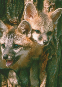 Slow and steady, like a gray shadow, the vixen gray fox climbed a white oak tree that leaned slightly downhill deep in the steep deciduous forest. Gray went up the tree about 30 feet, and then she stopped where two big limbs and the huge trunk formed a sort of basket. She had packed leaves in the basket. It looked like a giant squirrel’s nest. She curled up in her nest. From here she could see, hear and smell everything happening around her, pretty much safe from predators or all kinds.