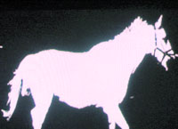 A technical glitch prevented “Nightmare,” a video loop of a white horse, from making her run on the river from St. Paul to Minneapolis. (Photo by Samantha Gaspardo) More on Nightmare