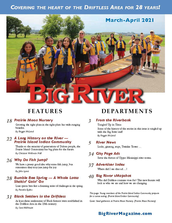 Links from the November-December 2020 issue Chronic Wasting Disease Alliance website The WDNR is seeking volunteers for its self-service Adopt-a-Kiosk program for CWD testing. ——— Here's more info on River Actions's River Webinar series: Archaeologist Ernie Boszhardt will lead us on a virtual introduction to beautiful Little Bluff in Trempealeau, Wis. Sponsored by Mississippi Valley Conservancy. Discover Little Bluff Check out Lake Pepin Alliance's membership drive.